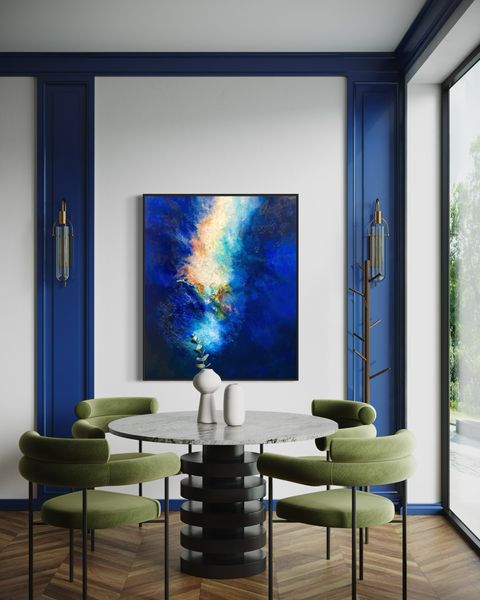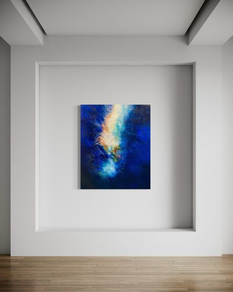 This painting, inspired by the Hubble telescope images, evokes the 'Big Bang’ or 'Creation', inviting personal connection through its abstract form. Like the Universe's birth, this vibrant work captures both energy and transformation. Its beauty lies in how it reflects your emotions - one day tranquil, the next tumultuous. Balancing materialism and spiritualism, it echoes the ongoing evolution of the Universe itself