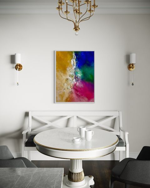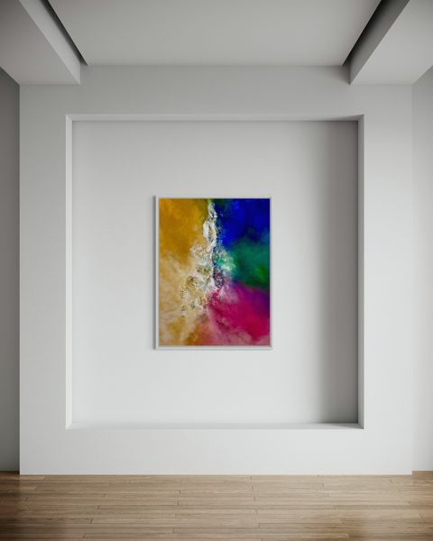 Primavera is an abstract piece created in acrylic and mixed media, inspired by the vibrant colours of Mallorca’s landscape and the fresh energy of spring. Soft greens, warm terracottas, and bursts of bright hues reflect blooming life and the island’s natural beauty. The textured rocks in the center represent rugged outcrops, grounding the composition and echoing Mallorca’s striking coastline and mountainous terrain. The layers in the piece evoke a feeling of renewal and connection to nature, capturing the essence of a Mallorca spring