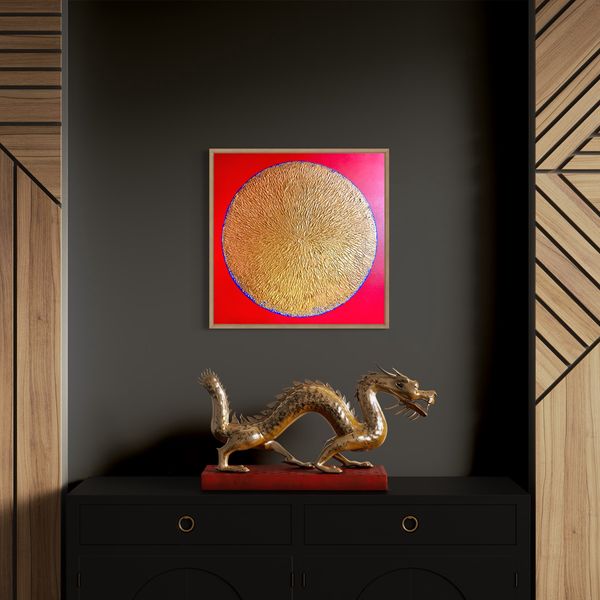 This piece uses a bold red background to reflect rising global temperatures and the serious impact of climate change. The red gives off a sense of danger, showing how the planet is becoming harder to live on. Earth is painted in gold to represent its value, while touches of blue hint at disappearing coastlines and environmental damage. The mix of red and gold highlights the clash between nature’s beauty and the threats it faces. The textured surface and use of acrylics add a sense of both strength and vulnerability, reminding us how fragile the planet really is—and how urgent it is to protect it