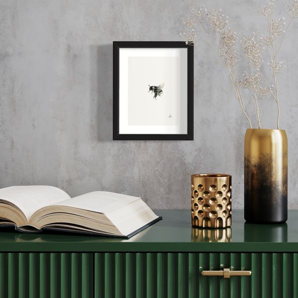 Miniature graphite pencil drawing of a bumble bee